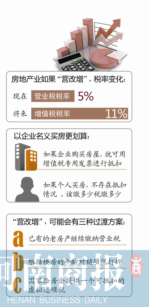 鄭州市地稅局一位不愿透露姓名的人士表示,如果房地產(chǎn)業(yè)“營改增”將增值稅稅率定為11%,相對(duì)營業(yè)稅,稅率上浮了。除土地成本外,建筑費(fèi)用是開發(fā)商最大的費(fèi)用,而建筑業(yè)營業(yè)稅稅率目前是3%,而其他抵扣項(xiàng)也很有限。