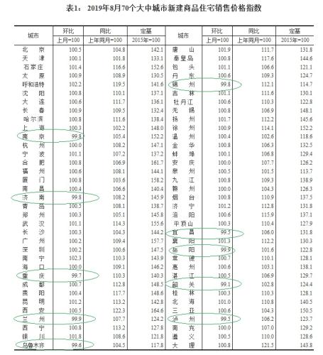 2019年8月70個大中城市新建商品住宅銷售價格指數(shù) 國家統(tǒng)計局網(wǎng)站截圖