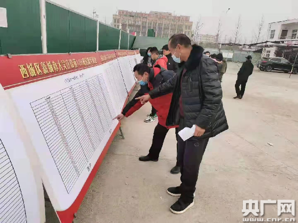 西城區(qū)新城辦大吳莊群眾在公開(kāi)欄前查看房源(央廣網(wǎng)發(fā)通訊員 安亞敏 供圖)