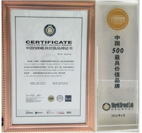由世界品牌實(shí)驗(yàn)室主辦的“世界品牌大會(huì)”于6月22日在北京舉行,會(huì)上發(fā)布了2016年(第十三屆)《中國(guó)500最具價(jià)值品牌》分析報(bào)告。在這份基于財(cái)務(wù)、消費(fèi)者行為和品牌強(qiáng)度的監(jiān)測(cè)報(bào)告中,三棵樹(shù)第十次榮登“中國(guó)500最具價(jià)值品牌排行榜”,品牌價(jià)值126.38億元。比上一年度品牌價(jià)值大漲33.44億元。
