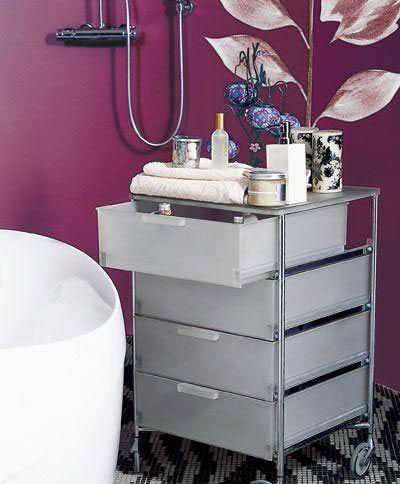 準(zhǔn)備豐富用品在身邊,一個(gè)帶滾輪設(shè)計(jì)的多抽屜最是方便。
