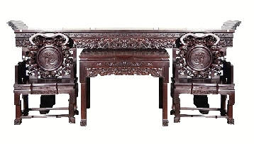 吳總介紹說(shuō),明式中堂和清式中堂各得其宜、各盡其妙,代表了不同家具風(fēng)格的高峰。針對(duì)當(dāng)今成功之士和富豪階層,勁飛最近以老紅酸枝打造的清式重雕中堂家具,尤其是剛剛創(chuàng)新、將于五一節(jié)推出的絲翎檀雕系列家具,將會(huì)具有難以抗拒的魅力。
