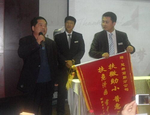 在會(huì)議現(xiàn)場(chǎng),曾經(jīng)在冠群成功借款的客戶(hù)代表——佳禾現(xiàn)代農(nóng)業(yè)有限公司董事長(zhǎng)孫國(guó)瑜先生,現(xiàn)場(chǎng)為松原冠群公司獻(xiàn)上一面錦旗,孫國(guó)瑜先生慷慨陳詞,非常感謝冠群為佳禾農(nóng)業(yè)公司解決了資金上的問(wèn)題,在冠群優(yōu)質(zhì)的服務(wù)、細(xì)心的講解、家人一樣的幫助之下快速的批款,在此代表公司感謝冠群的服務(wù)。