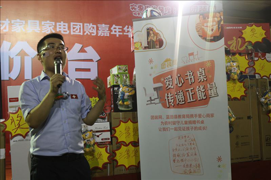 鑒于貫徹落實(shí)習(xí)近平總書記“把農(nóng)民工子女教育作為全民教育的一個(gè)重要組成部分來抓,是構(gòu)建社會(huì)主義和諧社會(huì)的一項(xiàng)重要任務(wù)!焙屠羁藦(qiáng)總理“促進(jìn)少年兒童的健康成長是社會(huì)文明進(jìn)步的重要標(biāo)志,讓每一名少年兒童健康快樂成長是全社會(huì)共同的責(zé)任。社會(huì)多一份關(guān)愛,孩子就多一份信心,我們的未來就多一份希望!币矠榱诉M(jìn)一步傳遞社會(huì)正能量,感召更多的人關(guān)注、關(guān)愛留守兒童,由團(tuán)裝網(wǎng)和藍(lán)田縣教育局共同主辦,以家居建材為主的愛心商家參與捐贈(zèng)的“愛心書桌”公益行動(dòng)在6月7日?qǐng)F(tuán)裝網(wǎng)首屆陶瓷精品節(jié)暨第14屆建材家具砍價(jià)會(huì)現(xiàn)場啟動(dòng),同時(shí)在6.21日?qǐng)F(tuán)裝網(wǎng)家裝建材團(tuán)購嘉年華現(xiàn)場愛心書桌完成了第二場愛心接力,現(xiàn)場有十多家愛心企業(yè)參與捐贈(zèng)。受捐學(xué)校代表藍(lán)田縣普化鎮(zhèn)中心小學(xué)副校長唐瑾均出席了這兩場愛心儀式。
