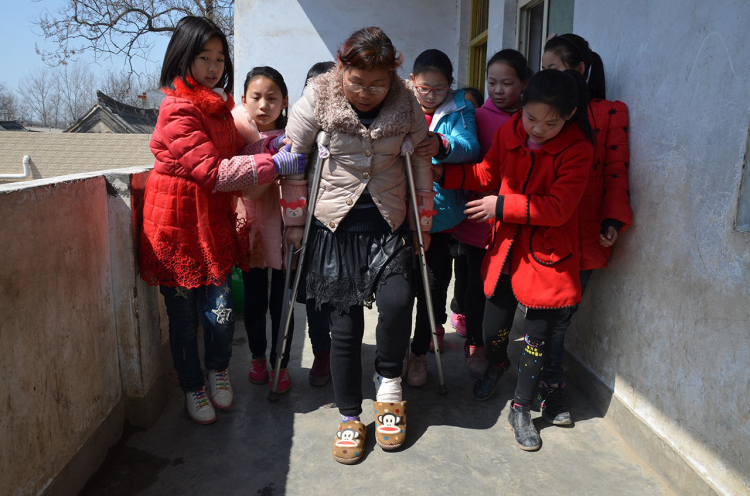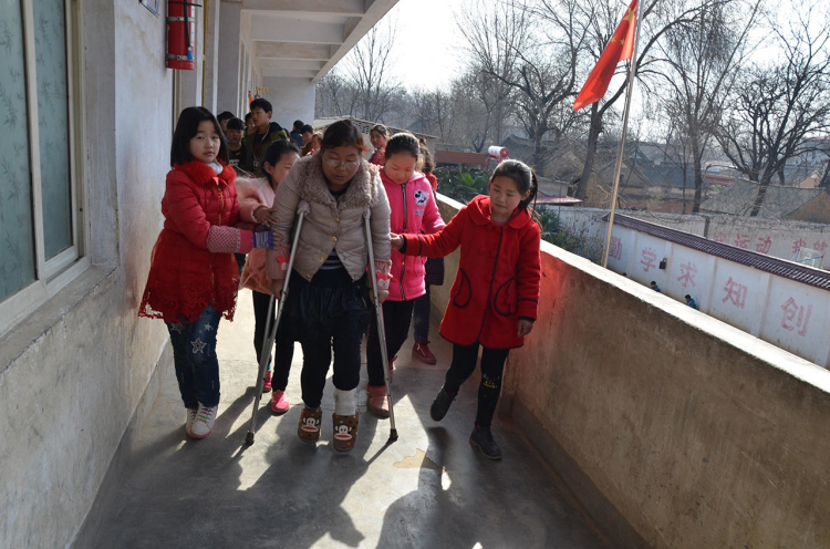 央廣網(wǎng)河南分網(wǎng)消息 這幾天,在河南郟縣中小學(xué)教師的微信群里,流傳著幾張照片:一名鄉(xiāng)村女教師,拄著雙拐,在校園里的臺(tái)階上、樓梯上吃力地行走著。這些照片被師生轉(zhuǎn)發(fā)后,在當(dāng)?shù)匾鹆瞬恍〉霓Z動(dòng),大家一致評(píng)論:夠敬業(yè)!真堅(jiān)強(qiáng)!