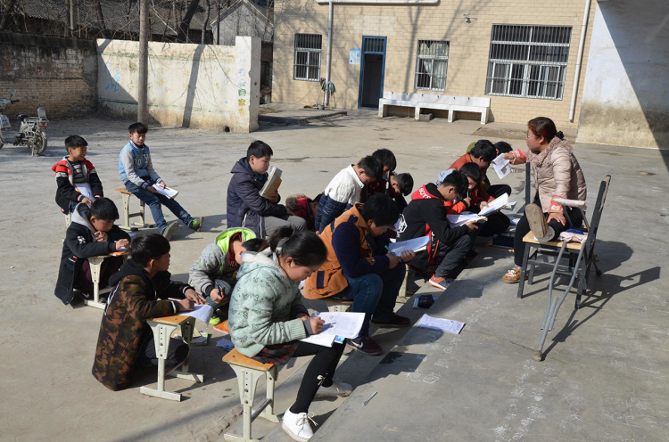 學(xué)校是寄宿制學(xué)校,中午天氣不錯(cuò),吃完午飯,薛老師把成績不太好的幾名同學(xué)集中在教學(xué)樓前的廣場上,給大家補(bǔ)習(xí)功課。