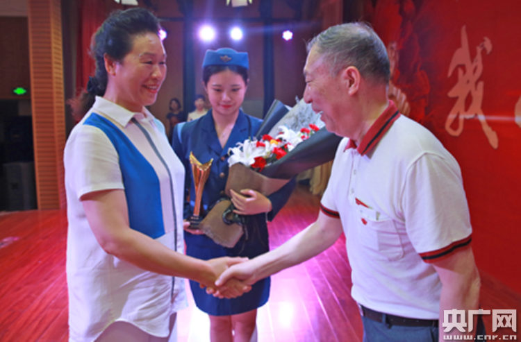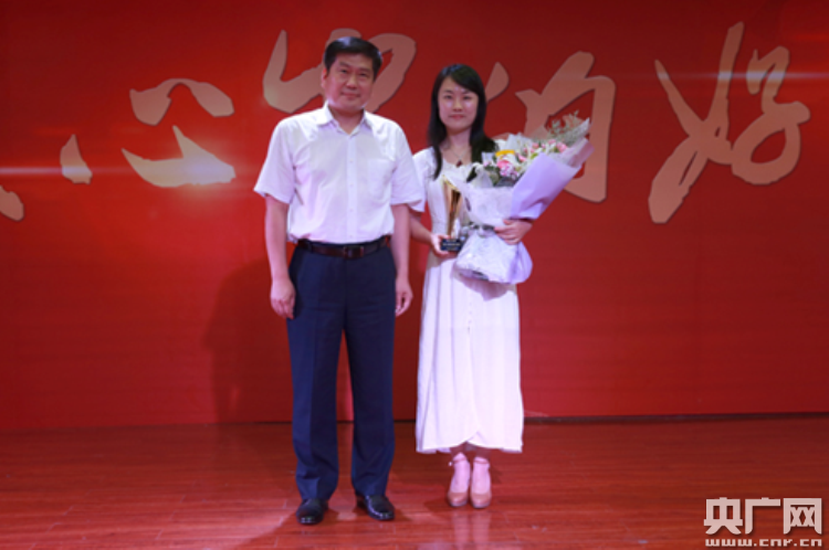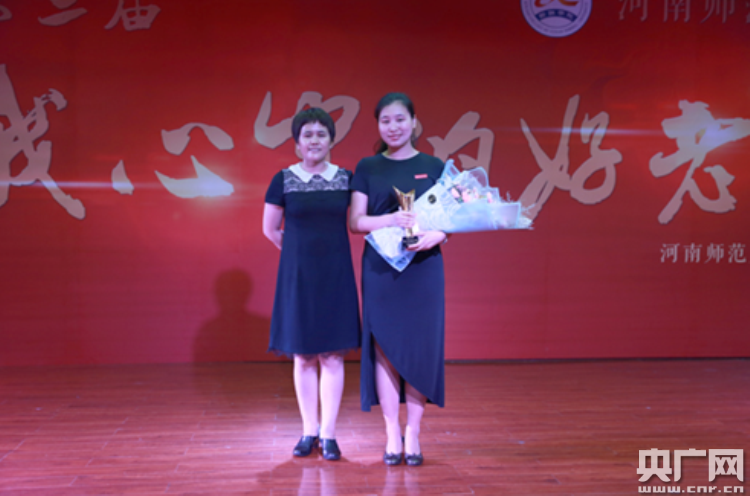 河南省教育廳民管處處長董玉民為宋麗娜老師頒獎