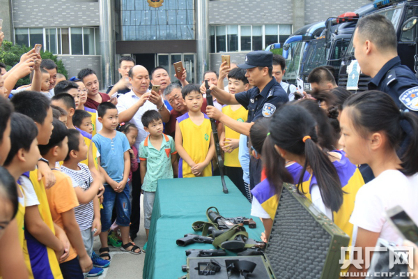 央廣網(wǎng)河南分網(wǎng)8月28日消息 (本網(wǎng)特別報道組)8月26日,新學(xué)期剛剛開學(xué),鄭州市緯一路小學(xué)四一班同學(xué)在班主任王春燕老師和家長的陪伴下,走進鄭州市公安局特警支隊,進行治安防范知識學(xué)習(xí)。孩子們不但和特警叔叔打了一場趣味籃球友誼賽,而且參觀了各種警用裝備、特警叔叔現(xiàn)場迅速拆裝槍支、五層樓高空速降、110米綜合體技能障礙跑,讓孩子們大開眼界。