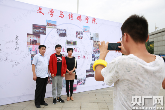 學生與家長在留念墻前合影