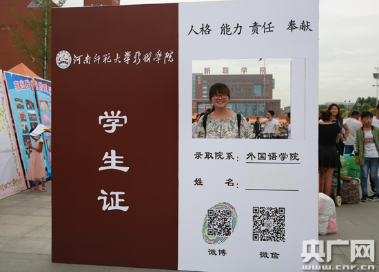 2017級英語專業(yè)的劉丹丹站在巨幅的新聯(lián)學院學生證前拍照留念,紀念這個特殊的日子;2015學前教育專業(yè)的陳子婳在向新生介紹學長們的美術(shù)作品;2017級語文教育專業(yè)的賈世博士高興地在簽名墻上留下了自己的名字;機電工程專業(yè)的新生們饒有興致地圍在3D打印機和智能機器人前,紛紛拍照留念;各教學單位和行政部門各顯神通,為2017級新生提供各種優(yōu)質(zhì)服務(wù)。