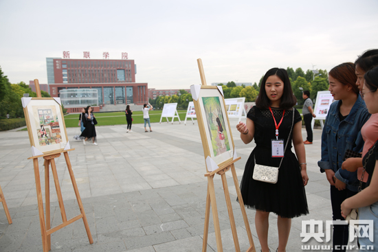 老生向新生介紹美術(shù)課作品