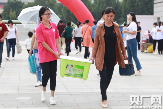 志愿者幫助新生搬運行李