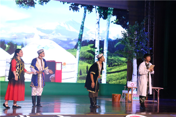 為充分發(fā)揮校園文化建設(shè)在大學(xué)生思想政治教育中的重要作用,5月30日下午,河南牧業(yè)經(jīng)濟(jì)學(xué)院原創(chuàng)話劇《青春在西部放歌》在該校英才校區(qū)大禮堂傾情上演。該校副校長陳艷、楊志清,省文化和旅游廳公共服務(wù)處處長楊文波,團(tuán)省委社會(huì)聯(lián)絡(luò)部部長李山英,中國青年報(bào)河南記者站站長潘志賢,省文化館志愿者工作站站長李道暢,省公益無限藝術(shù)團(tuán)團(tuán)長王繼英等領(lǐng)導(dǎo)嘉賓出席首演儀式,并與現(xiàn)場1200余名師生一起觀看了演出。