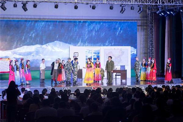 整場演出共分“到邊疆去”“情系昆侖山”“干群魚水情”三幕,真實(shí)而藝術(shù)地再現(xiàn)了主人公王雪嶺在“到西部去,到基層去,到祖國最需要的地方去”的感召下,深入邊疆牧區(qū)、積極投身生產(chǎn)、踐行志愿精神,最終扎根祖國邊疆建設(shè)事業(yè)的感人歷程。劇情跌宕起伏、扣人心弦,演出過程中,現(xiàn)場觀眾沉浸其中,隨著劇情的發(fā)展時(shí)而嘆息低沉、時(shí)而心潮澎湃、時(shí)而興奮歡呼,更有不少觀眾流下了感動(dòng)的淚水,切實(shí)體驗(yàn)到了“沉浸式”教育的獨(dú)特魅力。