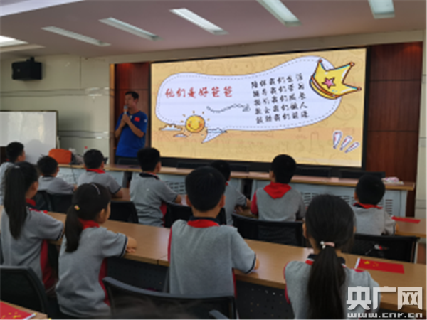 為增強(qiáng)學(xué)生愛國情懷,感受職業(yè)魅力,體會祖國的強(qiáng)大,淮河?xùn)|路小學(xué)特邀在中華人民共和國公安部工作的中國人民警察張翼,給同學(xué)們上一堂特別的思政課。