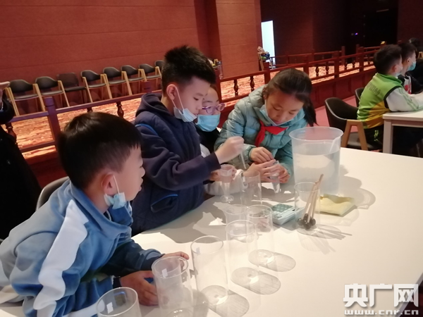 來(lái)到7號(hào)展廳實(shí)驗(yàn)區(qū),同學(xué)們看到了復(fù)原的可以演奏的大晟新鐘。同學(xué)化身宋代樂(lè)工,大家分成五個(gè)小組,每組分工協(xié)作,使用各自的量杯,調(diào)音器等實(shí)驗(yàn)工具,在老師的指導(dǎo)下,首先調(diào)整出do音,然后按照宋代使用的三分損益法,損就是減少,益就是增加,即是把一個(gè)數(shù)值平均分成三份,然后在原有數(shù)值的基礎(chǔ)上做加法或減法,這種方法只需要定出一個(gè)標(biāo)準(zhǔn)音就能推算出其他所有的音。同學(xué)們利用這個(gè)方法推算出七個(gè)音,用相對(duì)應(yīng)的水量數(shù)值,每組都做出了一套水杯編鐘,大家使用自己做出的水杯編鐘,演奏著清脆悅耳的音樂(lè)。通過(guò)親手模擬完整的宋代定音過(guò)程,同學(xué)們了解了物體震動(dòng)頻率和音色之間的物理規(guī)律,也深切感受到了大晟編鐘的歷史價(jià)值。
