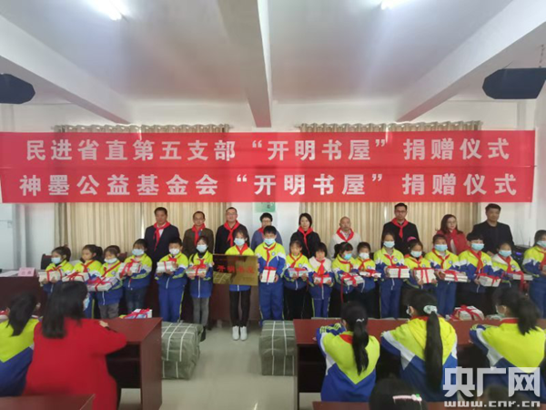 據(jù)了解,信陽(yáng)市平橋區(qū)洋河鎮(zhèn)中心小學(xué)是平橋區(qū)規(guī)模最大的農(nóng)村寄宿制小學(xué),在校生2137人,留守兒童占到50%以上。學(xué)校圖書(shū)老舊、破損問(wèn)題嚴(yán)重,已成為阻礙學(xué)校均衡發(fā)展的難題;顒(dòng)現(xiàn)場(chǎng),民進(jìn)河南省直五支部與神墨教育集團(tuán)平橋區(qū)盟校一起向洋河鎮(zhèn)中心小學(xué)捐贈(zèng)了一間開(kāi)明書(shū)屋,共計(jì)2000冊(cè)精美圖書(shū),價(jià)值5萬(wàn)余元。