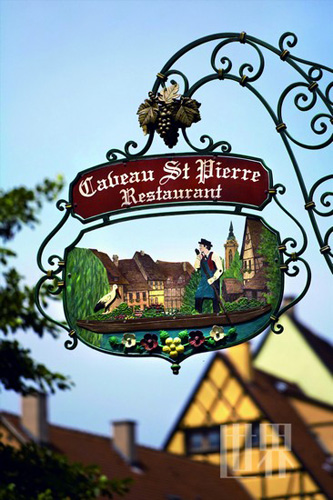"門外廣場上的那位德國人古登堡(Gutenberg),當(dāng)年是在這里,受葡萄酒榨汁機工作原理啟發(fā),才發(fā)明了金屬活字印刷術(shù)。阿爾薩斯美食對歐洲發(fā)展做了貢獻(xiàn)。"