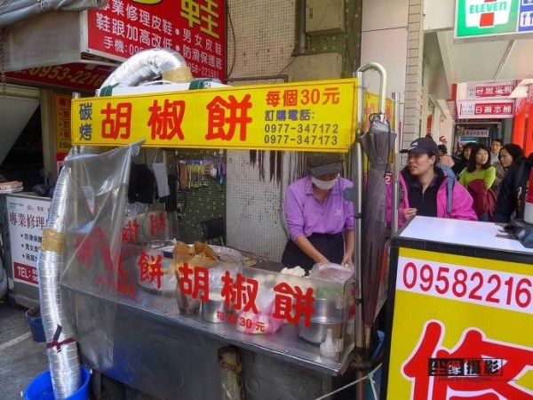 一個(gè)小時(shí)后,到達(dá)松江路,大家餓壞了,看見路邊的胡椒餅,幾乎是餓虎撲食般包圍上去,胡椒餅類似我們的永泰蔥餅,唇齒留香,初嘗臺(tái)灣小吃,初戀般讓人刻骨銘心。