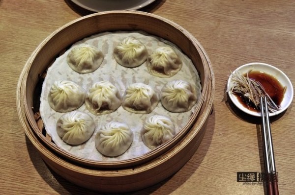 鼎泰豐名氣很大,店堂很小,一共三層樓,不僅沒看到包廂,連大桌子都沒有。女服務(wù)員打扮很美,服務(wù)熱情周到,和大陸小吃店粗嗓門吆喝經(jīng)營(yíng)差距甚大。碟子里備了很多的姜絲。