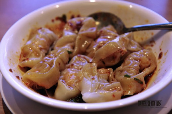 紅油抄手,這碗紅油抄手比我在成都吃到的好吃(也許沒找對(duì)地方),混沌做的餃子那么大,皮夠Q,餡也做得好。