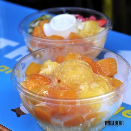 排隊(duì)十分鐘,水果冰沙終于來了,我對(duì)甜品的熱情度不是太高。