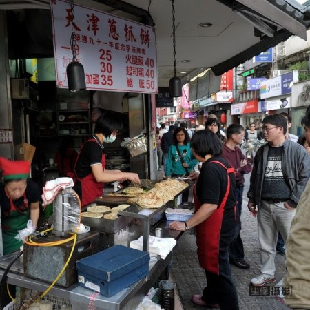 冰沙店對(duì)面的蔥抓餅,引起了我的好奇,像是煎餅,就這樣的小店都有人排隊(duì)買。