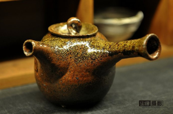 一件手把壺,陶面很特別。