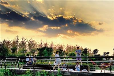 鄭州北龍湖濕地公園夕陽如丹游人紛至 記者 王秀清 圖鄭州北龍湖濕地公園夕陽如丹游人紛至 (記者 王秀清 圖)