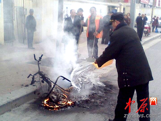 鄭州女子騎電車冒煙自燃 無人員傷亡