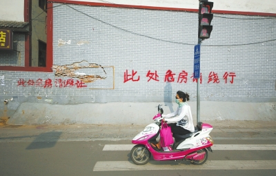 央廣網(wǎng)河南分網(wǎng)消息 據(jù)大河報(bào)報(bào)道:謝女士所說危樓位于邵雍故居南約50米處,緊靠龍門大道,且處于紅綠燈處,附近有很多商戶。房子面向龍門大道一側(cè),約有1.5米長的墻面脫落,磚塊裸露在外,部分有明顯松動。除了墻體上寫有“此處危房請繞行”的警示字樣外,沒有其他警示標(biāo)志。