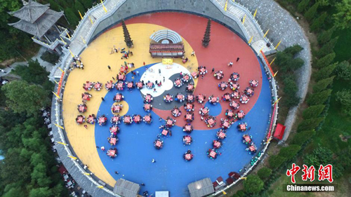 河南老君山數(shù)百人拼"中秋"共吃團(tuán)圓盛宴