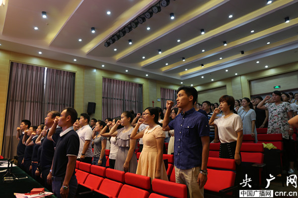 段立群校長(zhǎng)帶領(lǐng)全體教師宣誓