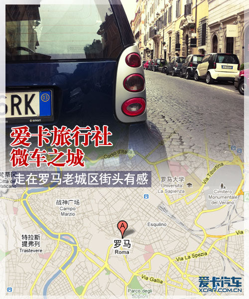 頁(yè)面上滿眼的菲亞特500讓我想起了前段時(shí)間去羅馬出差的情景,滿街(尤其是老城區(qū))的微型轎車穿梭于街巷之中。包括菲亞特500、Smart在內(nèi)的微型車占據(jù)了羅馬老城區(qū)街道的80%,活潑的外貌,靈巧的身形,讓我置身在了一個(gè)小車當(dāng)?shù)赖氖澜纭?/font>
