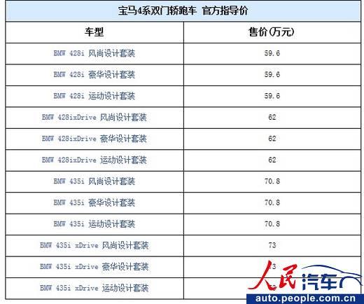 全新寶馬4系雙門轎跑上市 售59.6萬-73萬元