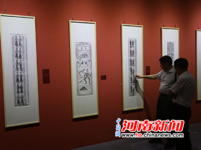 央廣網(wǎng)河南分網(wǎng)消息 6月10日,河南美術(shù)館內(nèi),觀眾在參觀“崇漢軒藏中國漢畫像磚精拓展”。