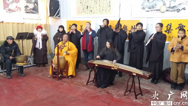 武陟佛協(xié)梵唄樂團(tuán)在“善緣禪韻”書畫展演奏
