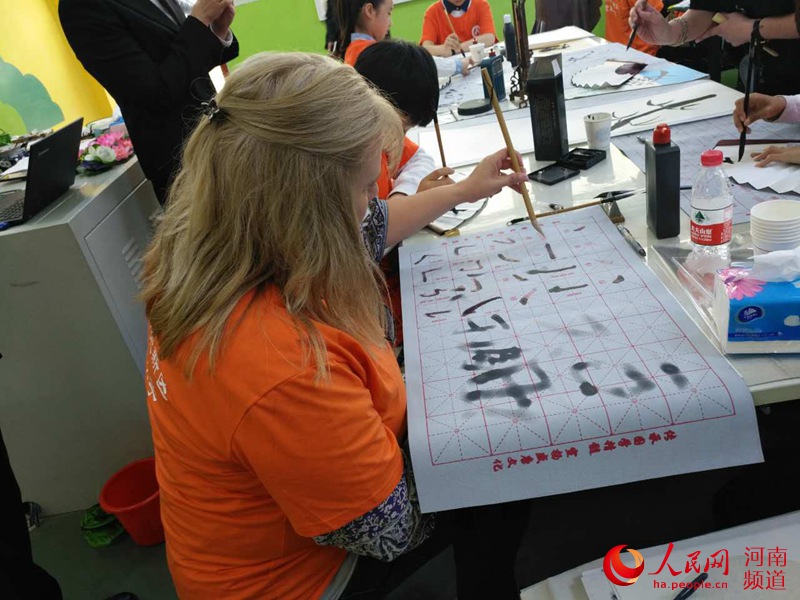 央廣網(wǎng)河南分網(wǎng)消息 國畫、毛筆字、傘畫、扇畫、舞獅、快板兒……4月12日, 來自美國的35名師生與鄭州市鄭東新區(qū)眾意路小學(xué)的師生一起,體驗不同的教育方式和多元文化。