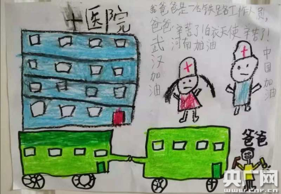 央廣網(wǎng)鄭州3月18日消息 “我爸爸是一名鐵路工作人員,爸爸辛苦了,白衣天使辛苦了,河南加油!武漢加油!中國加油!”這是鄭州北車輛段南陽西動用車間黨總支書記于智勇的女兒用微信發(fā)給他一幅手工畫上的文字,文字下面是:白衣天使們將要向醫(yī)院奔去;一位爸爸面向火車做出守護(hù)姿勢。于書記深情默默地注視了好一陣子,不免有些心酸。