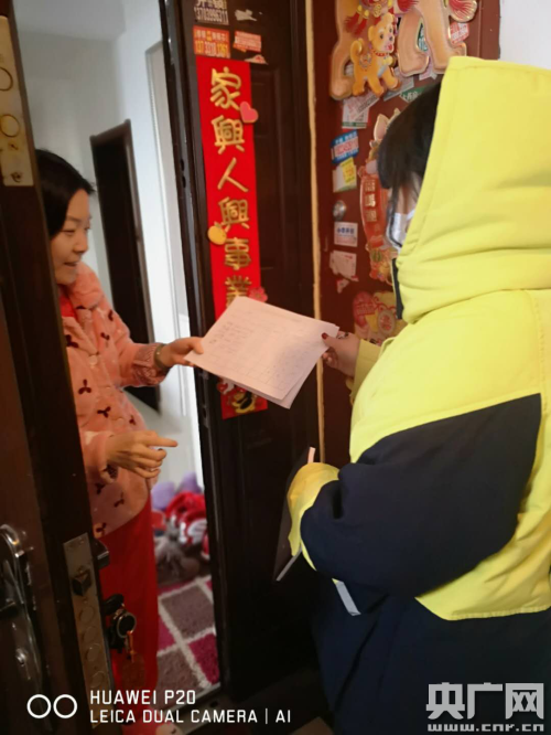 一個(gè)多月的堅(jiān)守,工作時(shí)長(zhǎng)已經(jīng)累計(jì)超過(guò)600小時(shí),15棟家屬樓,她已經(jīng)奔波上下100余趟,河南財(cái)政金融學(xué)院家屬院目前居住著300余戶教職工,1000余人,除返鄉(xiāng)過(guò)年的人員外,大約還有一半的人員在小區(qū),為了準(zhǔn)確掌握住戶信息,只能逐一入戶排查,在防護(hù)工具還沒有完全到位的情況下,時(shí)寶娟同志和兩位同事帶著一次性口罩、橡膠手套開始逐一樓層的核查,從早上7:30分到晚上9:00,連續(xù)十幾個(gè)小時(shí),用這種獨(dú)特的方式給小區(qū)的住戶“拜年”。