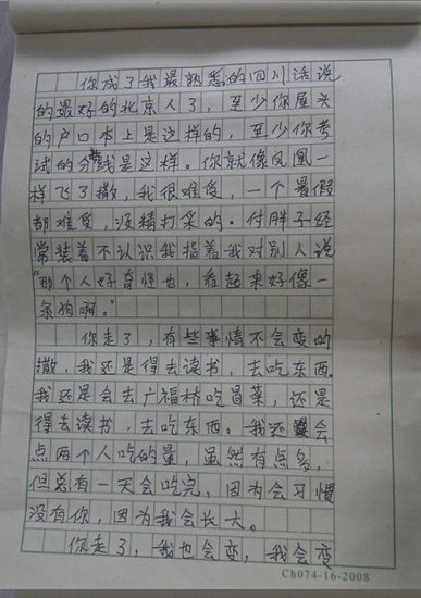 當(dāng)好朋友要走時(shí),小男孩感到一種無奈,他只好寫出來。離開的這個(gè)女孩可能和他有共同語言,對(duì)于12歲的孩子來說,這是一種很純粹的友誼。范教授認(rèn)為,現(xiàn)在的孩子普遍早熟,社會(huì)和學(xué)校更應(yīng)該去關(guān)心他們,引導(dǎo)他們。