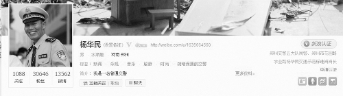 第三季度政務(wù)微博報(bào)告還對全國17815個(gè)公職人員微博進(jìn)行了嚴(yán)密的數(shù)據(jù)統(tǒng)計(jì),并根據(jù)活躍度和影響力排出了TOP20排行榜,我省有一人入圍,即鄭州交警五大隊(duì)民警楊華民。