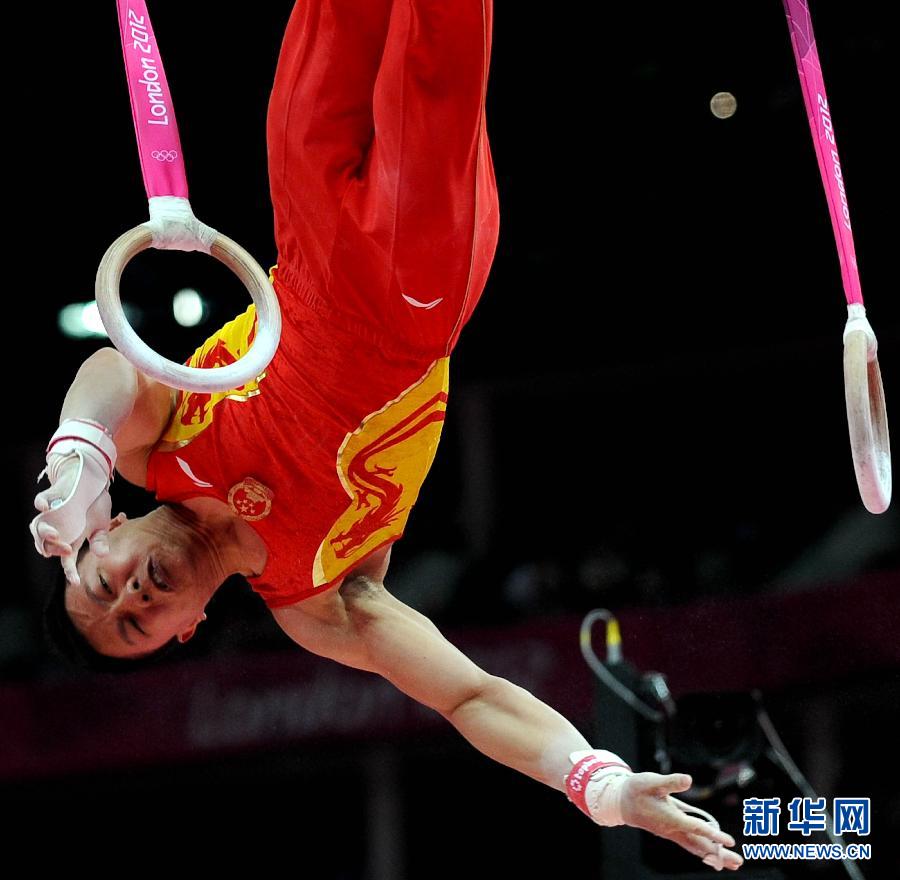 7月30日,中國(guó)選手陳一冰在吊環(huán)比賽中。當(dāng)日,在倫敦奧運(yùn)會(huì)體操男子團(tuán)體決賽中,中國(guó)隊(duì)獲得冠軍。 新華社記者王建華攝