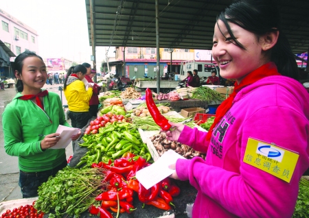 中廣網(wǎng)河南分網(wǎng)消息 據(jù)河南日報農(nóng)村版報道: 9月19日,寶豐縣中小學生在農(nóng)貿(mào)市場采集農(nóng)副產(chǎn)品價格信息。當日,寶豐縣統(tǒng)計部門邀請20名中小學生代表擔當統(tǒng)計信息調查員,深入農(nóng)貿(mào)市場、企業(yè)、鄉(xiāng)鎮(zhèn)、統(tǒng)計機房,了解統(tǒng)計數(shù)據(jù)、CPI數(shù)據(jù)生產(chǎn)和發(fā)布的模擬過程。 王雙正 攝