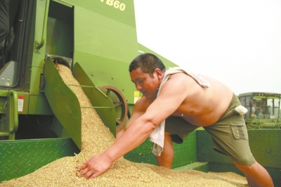 “今年麥子格外香啊!俺這里屬于永久性高標(biāo)準(zhǔn)糧田示范方,畝產(chǎn)在600公斤往上,比普通糧田高二三百斤!睏钣懒磷チ艘话炎蚜o枬M的麥子,掩飾不住豐收的喜悅。