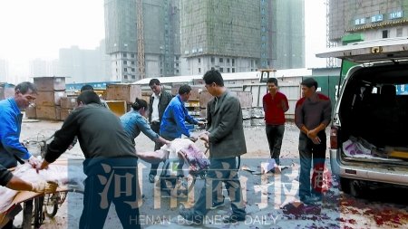 昨天,河南商報(bào)記者蹲點(diǎn)最后一天,喜逢項(xiàng)目“封頂大喜”,像自己家的房子封頂一樣,項(xiàng)目負(fù)責(zé)人特意搞了一個(gè)慶典,不但放鞭炮,還送給施工方三頭大肥豬犒勞工人。