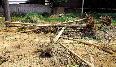 23日早上8點多,看到樹木都倒了,還納悶長得好好的怎么就推倒了,以為要建房子什么的。