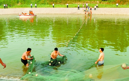 在現(xiàn)場,身穿迷彩服的消防官兵已在沉沙池兩岸拉起長繩,兩名上身穿紅色救生衣的消防官兵乘橡皮艇,手持長竹竿,在沉沙池水面上打撈。沉沙池岸邊,20多個市民在緊張地看著營救情況,幾名民警在指揮打撈。