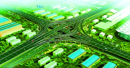 立交橋效果圖: 車輛以后行駛到這座立交時,能左轉(zhuǎn)、右轉(zhuǎn)、前行和掉頭,實(shí)現(xiàn)全方位通行。