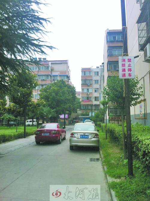 在每個(gè)車位上,都安裝車位鎖。在豎著“消防通道禁止停車”的牌子下,記者看到,有的車輛靠道路右側(cè)停了一排。給本來(lái)就不寬敞的小區(qū)道路上,添加了不安全因素。
